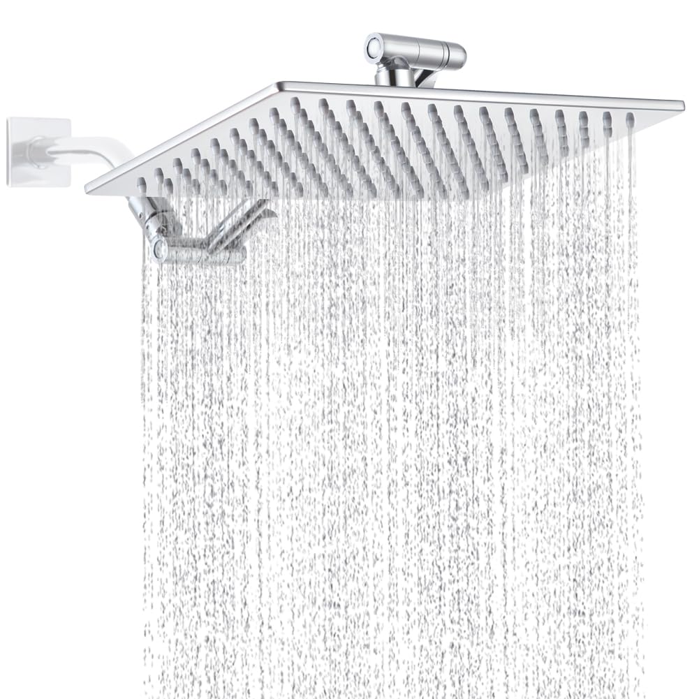 POP SANITARYWARE All Metal Rain Shower Head Chrome, 12 Inch Stainless Steel Rainfall Showerheads with Adjustable Extension Arm, High Pressure Detachable Showerhead - Amazon.com
